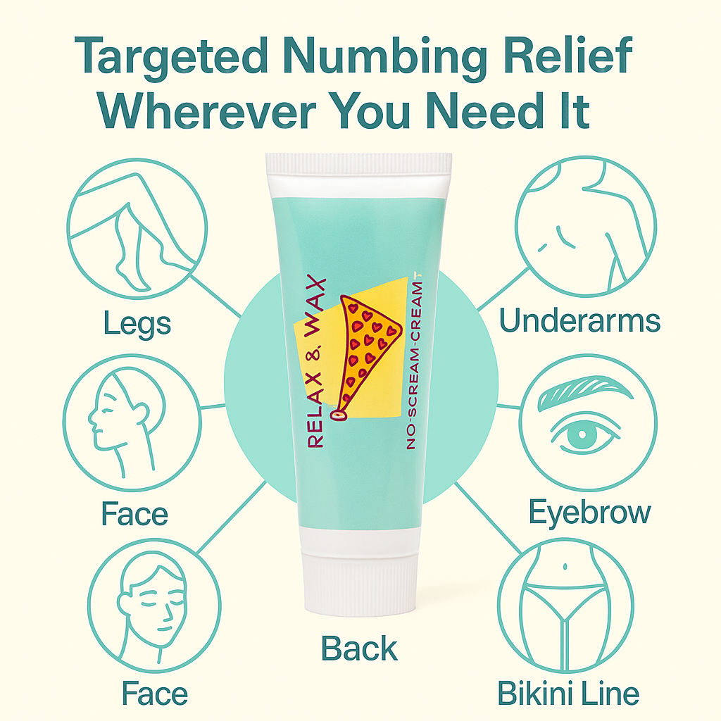 No Scream Cream can be used on all areas of the body, including the bikini area, lip, eyebrows, underarms, and legs. No Scream Cream is water-based and safe for all areas. It is not messy or greasy and will not harm clothing. You can get dressed as usual after application. No Scream Cream will not interfere with the waxing process or any hair removal system. It can be used for sugaring and threading as well.